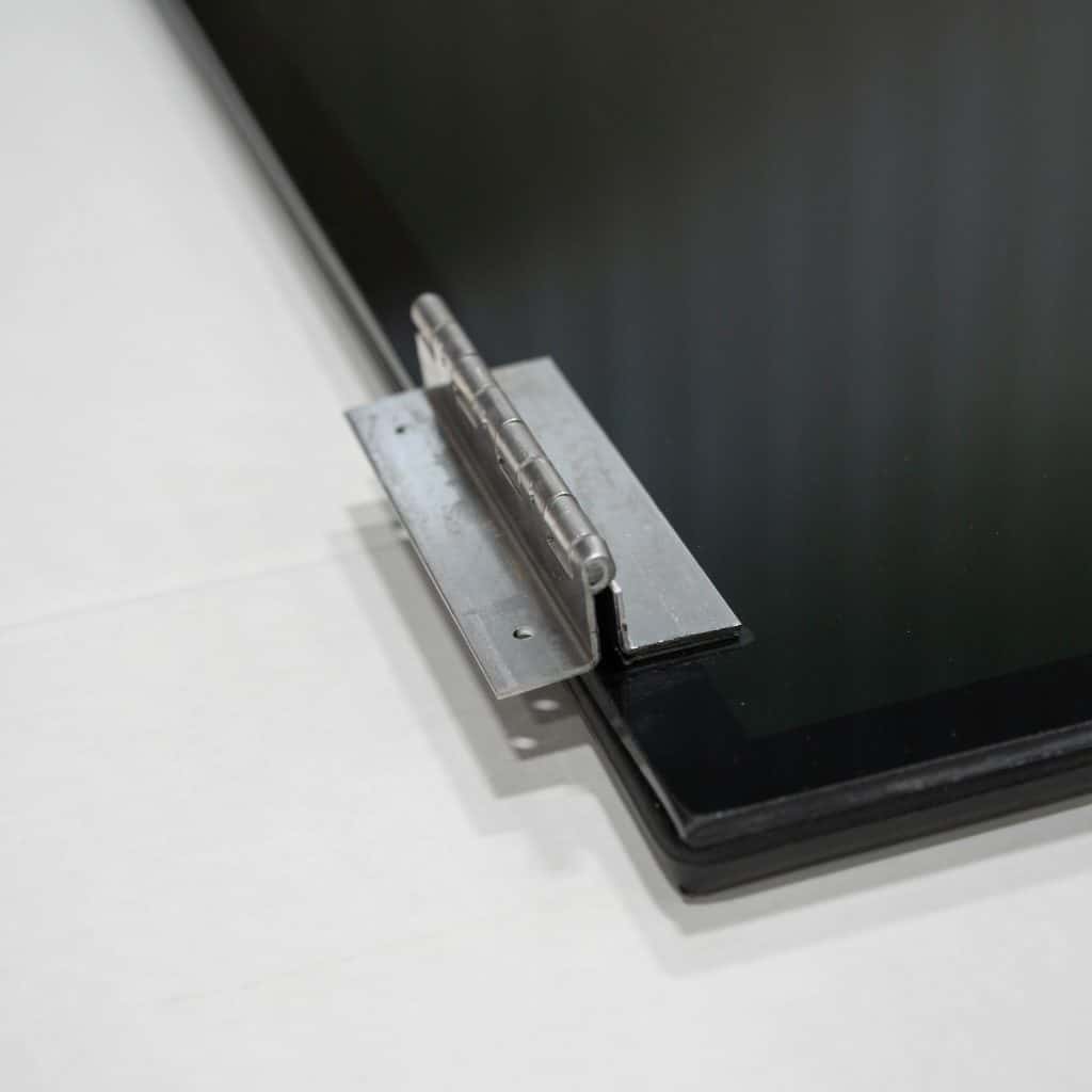 Mounting with Gasket: Add a 1/2″ spacer block behind each hinge and EZ Tabs to get correct spacing for gasket to seal against wall. Center window in finished opening and attach hinges with screws. For 30″ Window, EZ Tabs install 6″ in from the outside edge at the opposite side of the hinge. On 42″ Window, EZ Tabs install 10″ in from the outside edge at the opposite side of the hinge. The screw for EZ Tab should be tight but still allow the tab to rotate.