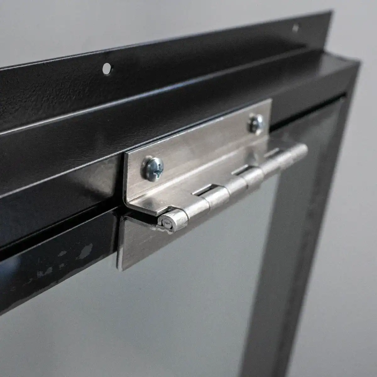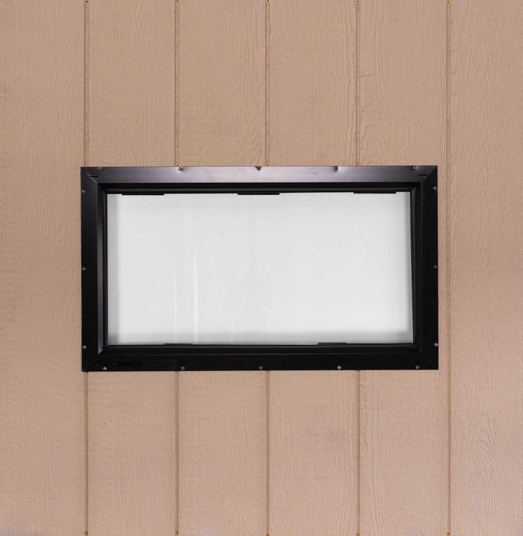 Our premium Hunting Blind Window is made using an aluminum frame with pre-drilled holes, thick weather stripping and clear tempered glass. Equipped with Extra Large EZ Open finger tabs and silent offset hinges. The window swings to the inside of the blind. Window can be mounted horizontally or vertically. Installs quickly using basic tools.