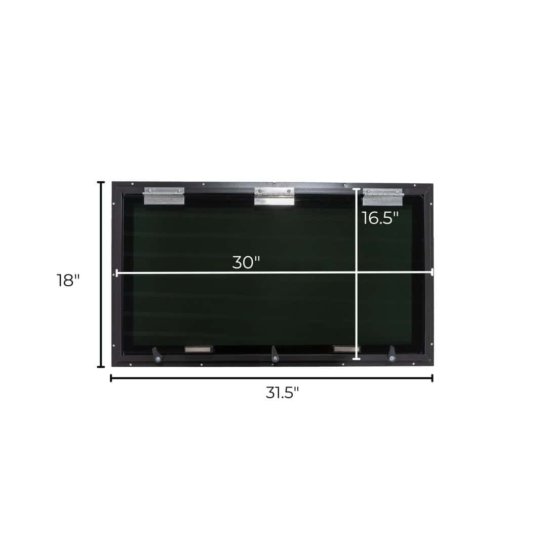 Our premium Tinted Hunting Blind Window is made using an aluminum frame with pre-drilled holes, thick weather stripping and smoked tempered glass. Equipped with Extra Large EZ Open finger tabs and silent offset hinges.