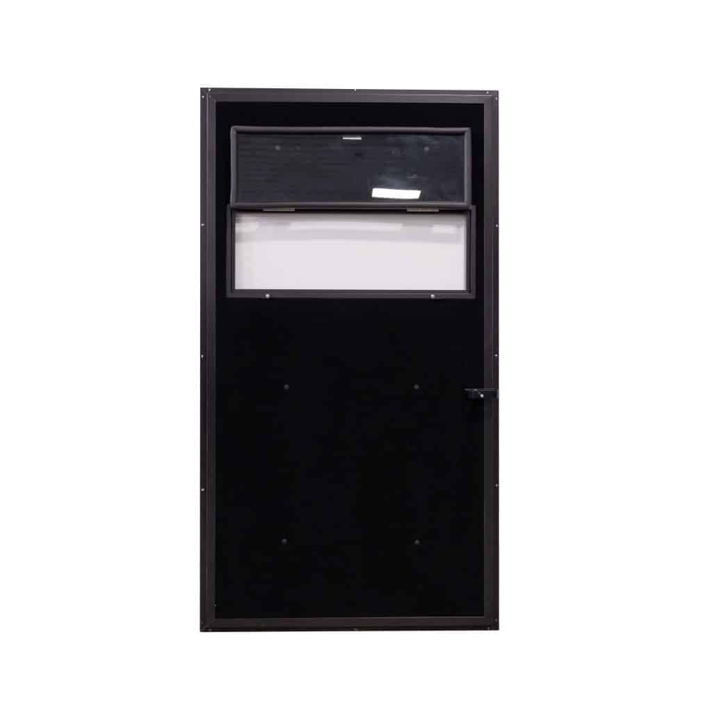 You found it- the best door on the market. Easy to install pre-hung Hunting Blind Door with pre-drilled holes, aluminum frame and skin for DIY hunting blinds. Features 30″ tempered glass window.